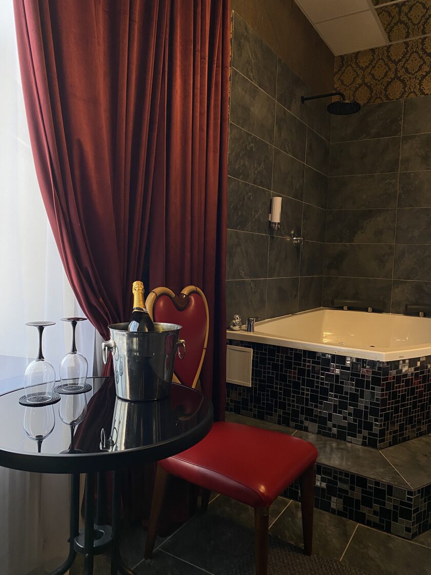 Numuriņš ar SPA vannu un apaļu gultu. Atrodas Kārklu muižas pirmajā stāvā, logs ir vērsts uz dīķi. Pavasara un vasaras periodā, varžu koncerts var notikt arī visu nakti. Mūsu muižas logi un biezās sienas var nespēt pilnībā noslāpēt šīs skaņas. Trausla miega gadījumā lūgums izvēlēties citu numuriņu. Numuriņš aprīkots ar 55 collu TV, bezmaksas WiFi. Viesiem pieejama sauna (2stundas = 40Eur).